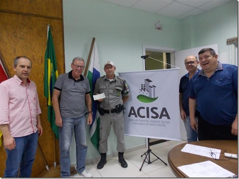A Brigada Militar foi beneficiada com R$ 4.950,00, por intermédio da Acisa, sendo que no dia 09/10/2019 foi repassado o valor ao tenente Sr. Mauri Adolfo Kuzniewski, no auditório da entidade, contando com a presença de integrantes da diretoria.