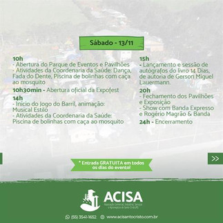 Está chegando mais um grande dia para a comunidade Santocristense, nesta sexta-feira, 12/11, inicia a Expofest, um evento que simboliza a força do município, a garra para retomar e acima de tudo, a união! União de organizadores e voluntários para fazer acontecer, do município para apoiar e dar suporte a tudo o que for necessário e dos investidores que tornaram possíveis todos os planos para esta retomada dos eventos oficiais em nosso município.